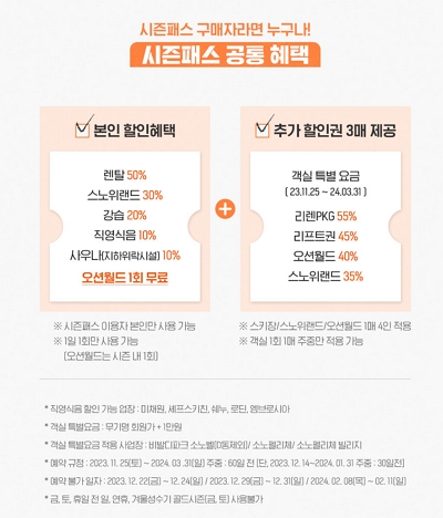홍천 비발디 파크 스키장 시즌이용 권은 PC로만 구입할 수 있으니 주의하시길 바랍니다. 다양한 혜택을 제공합니다.