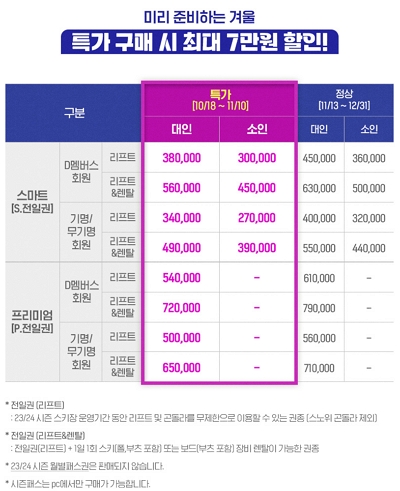 휘닉스 스노우 파크 시즌권은 2차 판매로 구입하 실 수 있습니다. 차별화된 혜택을 제공하고 있으니 참고 하시면 좋을 것 같습니다.