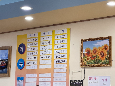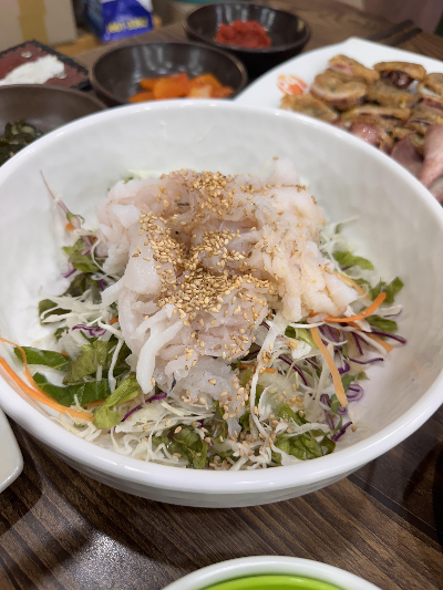 물회는 일단 단백하고, 비린맛이 전혀 나지 않았어요! 그리고 타 물회 집에 비해 저렴합니다. 타 물회집은 2만원은 기본으로 넘는데, 여긴 12000원에 먹을 수 있어요! 거기다 오징어 순대 18000원 이고 2마리 오징어가 나옵니다. 정말 맛있습니다. 오징어 순대 맛있다는 블로그를 보고 시킬까 고민했었는데 후회없이 정말 맛있게 먹고 왔습니다. 2명이서 간다면, 물회1/ 오징어 순대 1 로 먹으면 배부르게 먹을 수 있을것 같아요! 가격이 아깝지 않았습니다.