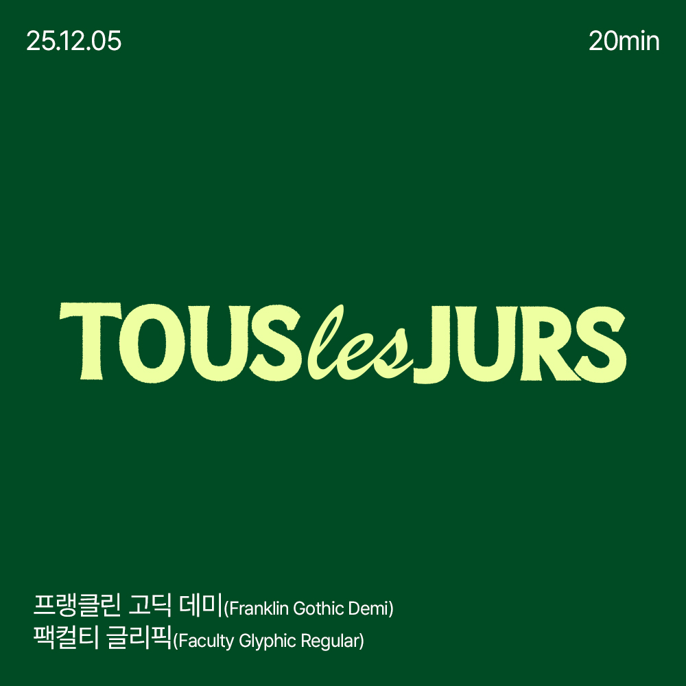 카테고리 없음 251205 - 뚜레주르 신상 로고 폰트 제작하기 by 심쟁이 2025. 12. 5. 반응형 251205 - 뚜레주르 신상 로고 폰트 제작하기 반응형 공유하기 게시글 관리 심쟁이 저작자표시 비영리 변경금지 (새창열림)